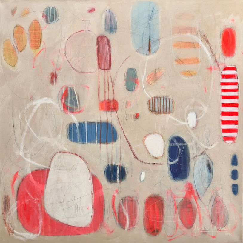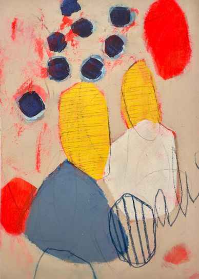 In the Errands series, Carolina Garcia explores the overwhelming, chaotic energy of balancing motherhood, work, marriage, and the endless lists of daily life. Through vibrant colors, layered textures, and spontaneous mark-making, she translates the constant feeling of having a thousand things pending—and the social pressure to somehow do it all perfectly.