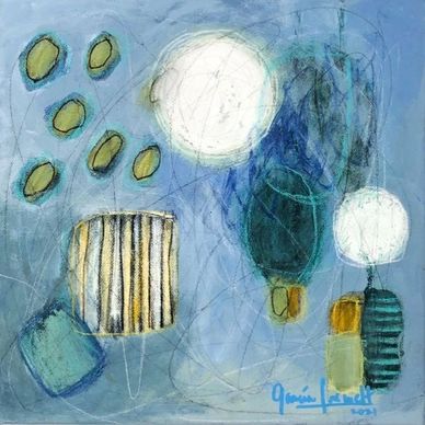 Each painting translate the lush coastal landscape into floating organic forms and layered textures, offering glimpses of sandy beaches, calm and turquoise waters, and fleeting clouds. The compositions invite viewers into an atmosphere of weightlessness and contemplation, where memories of tropical light and ocean breezes are distilled into color, form, and movement.
